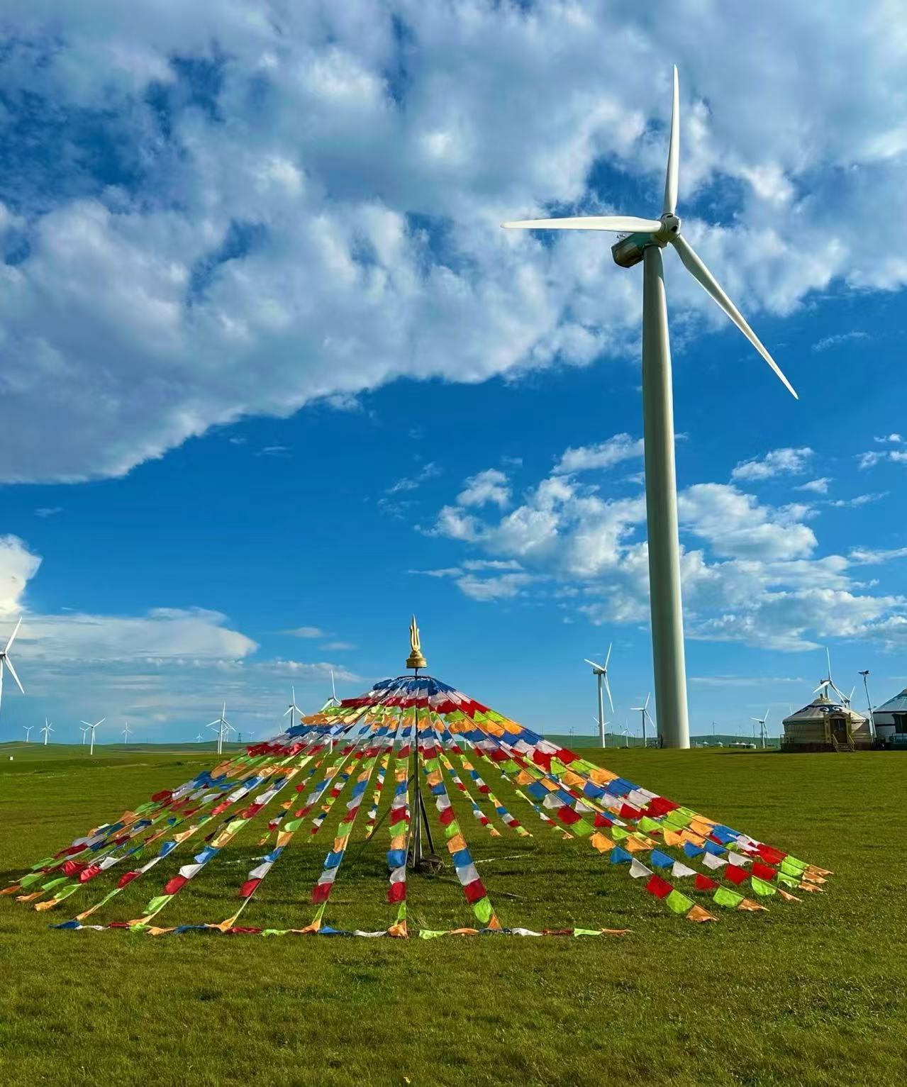 ● 早餐后驱车前往辉腾锡勒草原,这里是海拔千米以上的高山草甸,被誉为“空中花篮”。抵达后接受蒙古族热情的下马酒礼仪,体验骑马穿越草原项目,深入草原腹地探访牧民家、打卡敖包山,与漫山遍野的白色风车群同框拍照,亲身感受“天似穹庐,笼盖四野”的壮阔意境,草原骑马,感受天苍苍野茫茫风吹草低见牛羊的美景(包含骑马费用)